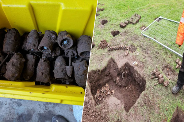 பிரித்தானியாவில் உள்ள குழந்தைகள் பூங்காவில் புதுப்பித்தல் பணியில் ஈடுபட்டிருந்த தொழிலாளர்களால் இந்த குண்டுகள் கண்டுபிடிக்கப்பட்டன, மேலும் குண்டுகள் இயக்கத்தில் இருந்ததாக புலனாய்வாளர்கள் தெரிவித்துள்ளனர்.
