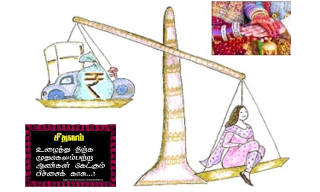உடுக்க ஆடையிருந்தும், படுக்க பாய் இருந்தும், அகம் நிறைய அன்பிருந்தும், முகம் நிறைய அழகிருந்தும் இந்த சீதன பிச்சை தேடி நித்தம் அலையும் புத்தி கெட்ட கும்பல்களால் எம்பெண்கள் வாழாவெட்டியாக வாழ்ந்து தொலைக்கும் அசிங்கங்கள் அரங்கேறுகின்றன.