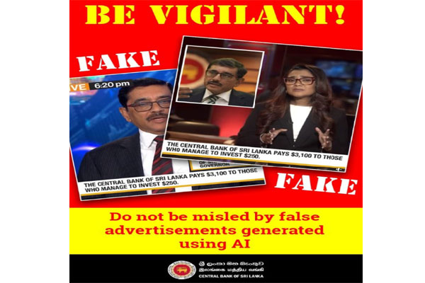 சிறிய முதலீடுகளுக்கு கணிசமான நிதி வருமானத்தை வங்கி வழங்குவதாக பொய்யாகக் கூறும் மோசடி விளம்பரங்களுக்கு எதிராக இலங்கை மத்திய வங்கி (CBSL) கடுமையான எச்சரிக்கையை விடுத்துள்ளது. செயற்கை நுண்ணறிவைப் பயன்படுத்தி உருவாக்கப்பட்ட இந்த ஏமாற்று விளம்பரங்கள், பொதுமக்களைத் தவறாக வழிநடத்த, மத்திய வங்கி ஆளுநர் கலாநிதி நந்தலால் வீரசிங்கவின் படங்களைத் தவறாகப் பயன்படுத்துகின்றன என்பதை CBSL எடுத்துக்காட்டியது. டிஜிட்டல் தளங்களில் தோன்றும் இந்த ஜோடிக்கப்பட்ட விளம்பரங்கள், மத்திய வங்கி ஒரு சிறிய தொகையை முதலீடு செய்யும் நபர்களுக்கு பெரிய தொகையை செலுத்துவதாக தவறாகக் கூறுகின்றன.