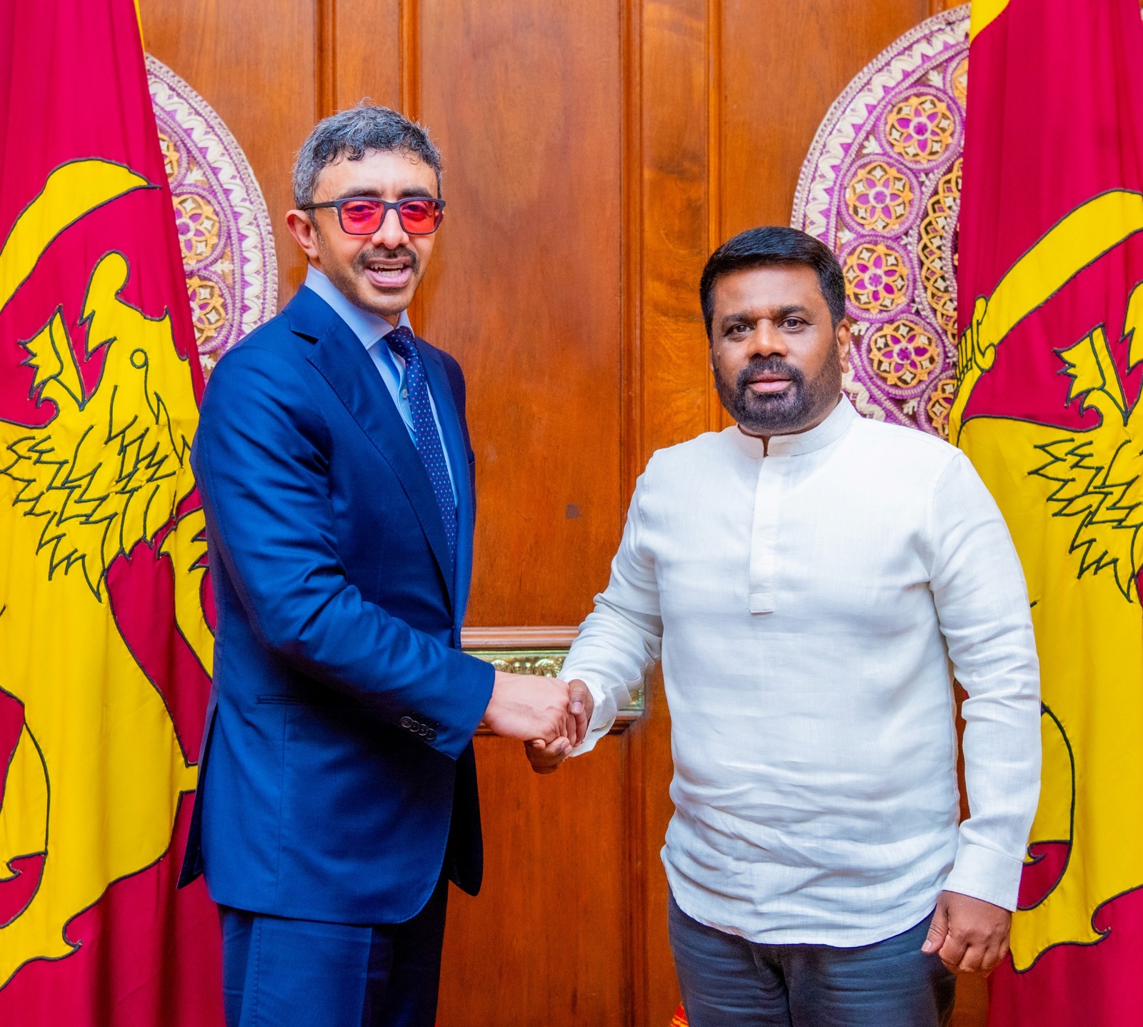 இலங்கைக்கு விஜயம் மேற்கொண்டிருக்கும் ஐக்கிய அரபு அமீரகத்தின் உப பிரதமரும் வெளியுறவு அமைச்சருமான ஷேக் அப்துல்லா பின் சயீட் அல் நஹியான் தலைமையிலான குழுவினர், இன்று (22) ஜனாதிபதி செயலகத்தில் ஜனாதிபதி அநுர குமார திசாநாயக்கவை சந்தித்து கலந்துரையாடியபோது இதனைத் தெரிவித்தனர்.