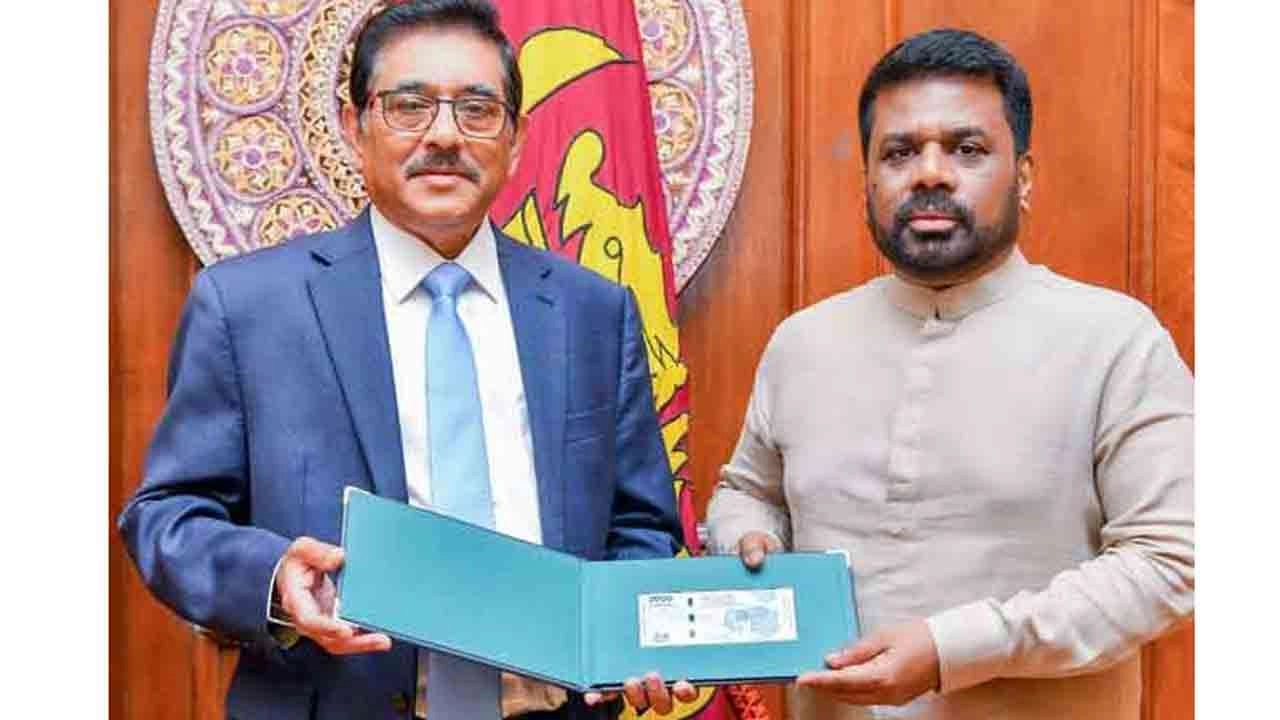 இலங்கை மத்திய வங்கியின் 75 ஆவது ஆண்டு நிறைவைக் குறிக்கும் வகையில் வெளியிடப்பட்ட 2000 ரூபாய் புதிய நினைவு நாணயத் தாள், மத்திய வங்கியின் ஆளுநர் கலாநிதி நந்தலால் வீரசிங்கவினால் இன்று (29) முற்பகல் ஜனாதிபதி அலுவலகத்தில் ஜனாதிபதி அநுரகுமார திசாநாயக்கவிடம் கையளிக்கப்பட்டது.