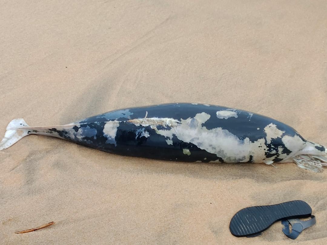 அம்பாறை மாவட்டம் கல்முனை மாநகர சபைக்குட்பட்ட கல்முனை கடற்கரை பள்ளிவாசல் முன்பாக உள்ள கடற் பிரதேசத்தில் டொல்பின் மீன் ஒன்று இறந்த நிலையில் கரையொதுங்கியுள்ளது.