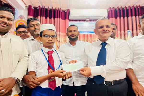 சம்மாந்துறை பிரதேச சபையின் விசேட அமர்வு தவிசாளர் ஐ.எல்.எம்.மாஹிர் தலைமையில் சபா மண்டபத்தில் வெள்ளிக்கிழமை (26) இடம்பெற்ற பின்னர் சாதனை மாணவனை சபைக்கு அழைத்து அங்கு தவிசாளர் மாஹிர், காசோலையை வழங்கி கௌரவித்தார்.