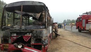 மோதிய வேகத்தில் பேருந்து தீப்பிடித்து எரிந்தது. பேருந்தில் இருந்த பயணிகள் உயிர் பயத்தில் அலறினார்கள். வெளியேற முடியாமல் தீயின் கோரத்தாண்டவத்துக்கு இரையான 22 பேர் இந்த விபத்தில் உடல் கருகி உயிரிழந்தனர்.