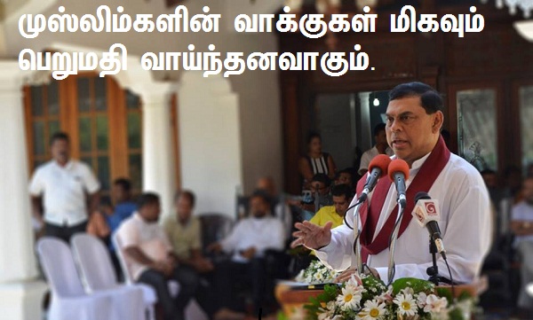 “முன்னாள் ஜனாதிபதி மஹிந்த ராஜபக்ஷவின் ஆட்சிக்காலத்தில் முஸ்லிம்களுக்கு எதிராக சில குழுக்களால் மேற்கொள்ளப்பட்ட வன்முறைகளால் முஸ்லிம்கள் அதிருப்தி கொண்டு ஜனாதிபதித் தேர்தலில் எதிர்த்து வாக்களித்தார்கள்.