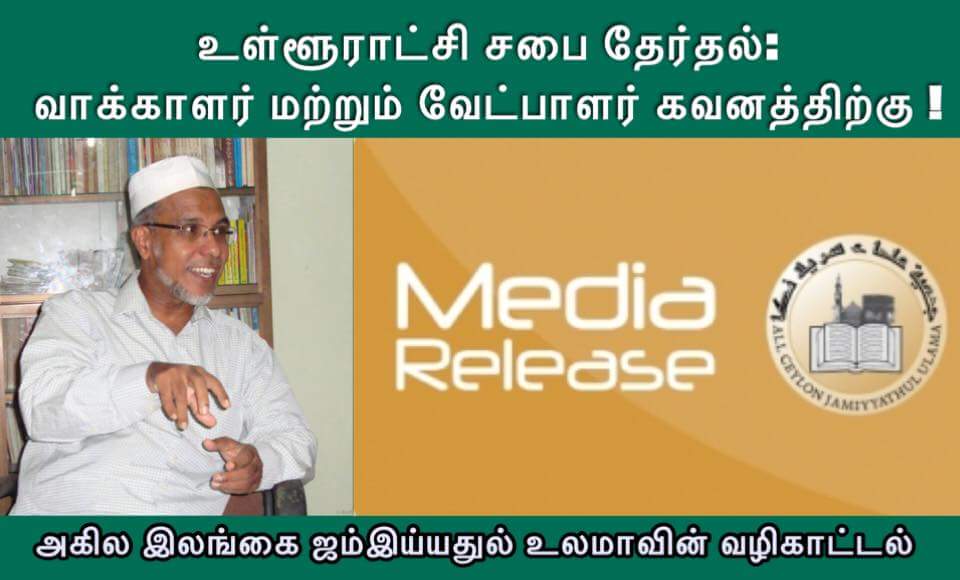 உள்ளூராட்சி சபைத் தேர்தலுக்காக களமிறங்கியிருக்கின்ற கட்சிகளும்வேட்பாளர்களும் பின்வரும் வழிகாட்டல்களைப் பேணி நடக்கவேண்டுமென எதிர்பார்க்கின்றோம் எமது தாய் நாடான இலங்கைமண்ணில் நல்லாட்சி மலர வேண்டும் எல்லா சமூகங்களும்சமயத்தவர்களும் நல்லிணக்கத்தோடும் ஐக்கியமாகவும் வாழவேண்டும் நாடு சகல துறைகளிலும் வளர்ச்சி கண்டு முன்னேற்றப்பாதையில் பயணிக்க வேண்டும் என்பதே உங்களது எதிர்பார்ப்பாகஅமைதல் வேண்டும்.இந்த வகையில் நல்லாட்சிக்கான சிறந்தமுன்னுதாரண புருஷர்களாக நீங்கள் திகழ வேண்டும் என்பதே எமதுஎதிர்பார்ப்பு.