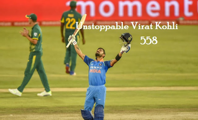 தென் ஆப்பிரிக்காவுக்கு எதிரான ஆறு போட்டிகள் கொண்ட ஒருநாள் தொடரில் 558 ரன்கள் அடித்து இந்திய அணியின் கப்டன் விராட் கோலி உலக சாதனை படைத்துள்ளார்.
