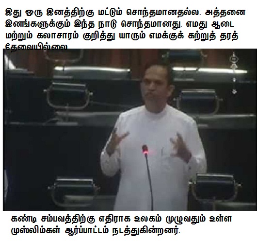 கண்டி சம்பவத்திற்கு எதிராக உலகம் முழுவதும் உள்ள முஸ்லிம்கள் ஆர்ப்பாட்டம் நடத்துகின்றனர்.” – என்றார்.