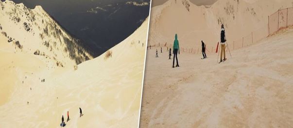 சைபீரியா மற்றும் சஹாராவின் அரிய நிகழ்வாக கிழக்கு ஐரோப்பாவின் சில பகுதிகளில் இந்த ஆரஞ்சு பனி பொழிவு ஏற்பட்டது.
