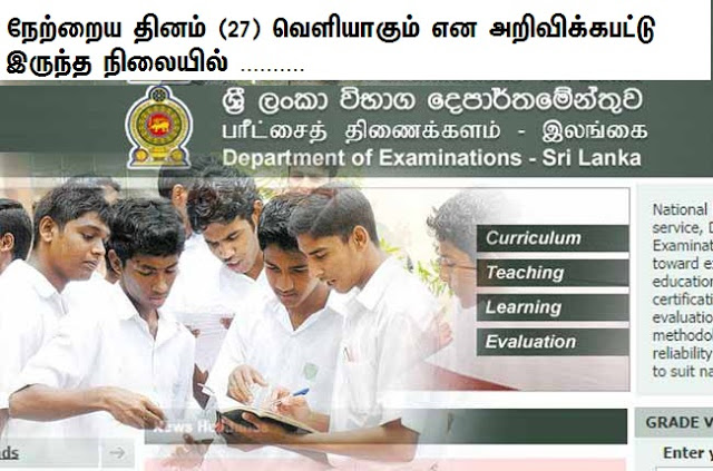 நேற்றைய தினம் (27) வெளியாகும் என அறிவிக்கபட்டு இருந்த நிலையில் இன்று (28) நள்ளிரவுக்குள் பரீட்சை பெறுபேறுகளை இணையத்தில் வௌியிடுவதாக பரீட்சைகள் ஆணையாளர் நாயகம் சனத் பூஜித கூறினார்.