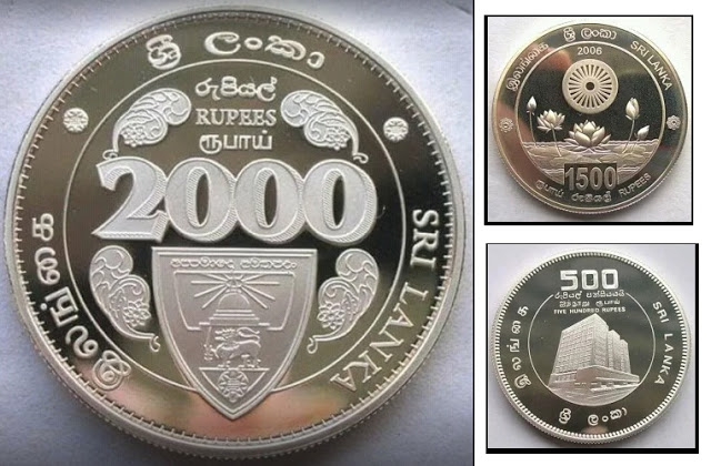 அண்மையில் 2000, 1500, 500 ரூபா நாணய குற்றிகள் வெளியிடப்பட்டன.
