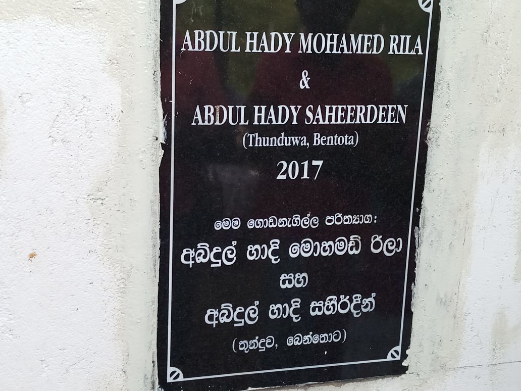 துந்துவை, பெந்தோட்டையை சேர்ந்த பிரபல சமூக சேவையாளர்களான அப்துல் ஹாதி ரிழா மற்றும் அப்துல் ஹாதி சஹீர்தீன் ஆகியோரின் சொந்த செலவில் இந்நிலையம் கட்டப்பட்டு மக்களிடம் இன்று கையளிக்கப்பட்டதும் குறிப்பிடத்தக்கது.