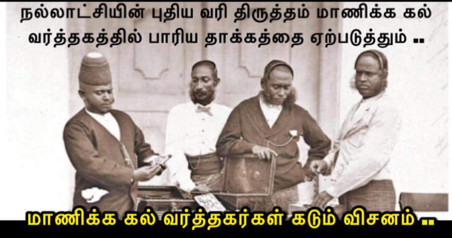 மாணிக்க கல் வர்த்தகத்திற்கு கடந்த காலத்தில் நிகர லாபத்தில் 0.50 வீதவரி அறவிடப்பட்டிருந்த நிலையில் தற்போது அது 14 வீதமாகஉயர்த்தப்பட்டுள்ளது.இது சிறிய அதிகரிப்பல்ல. இது ஜெம் வர்த்தகத்தைமேற்கொள்வோரை மிகக் கடுமையாக பாதிக்கும் என அவ்வர்தகத்தில்ஈடுபடுவோர் குறிப்பிடுகின்றனர்.