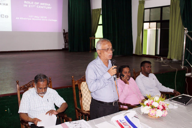 ஸ்ரீ லங்கா முஸ்லிம் மீடியா போரமும் SERENDIB SCHOOL DEVELOPMENT FOUNDATION இன் LICO Club உம் இணைந்து ஏற்பாடு செய்த 60ஆவது ஊடக செயலமர்வு கொழும்பு ஹைரிய்யா பெண்கள் கல்லூரியில் கடந்த சனிக்கிழமை (2018.05.12) நடைபெற்றபோதே அவர் மேற்கண்டவாறு தெரிவித்தார்.