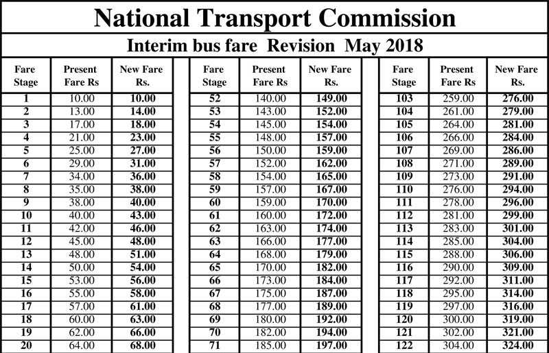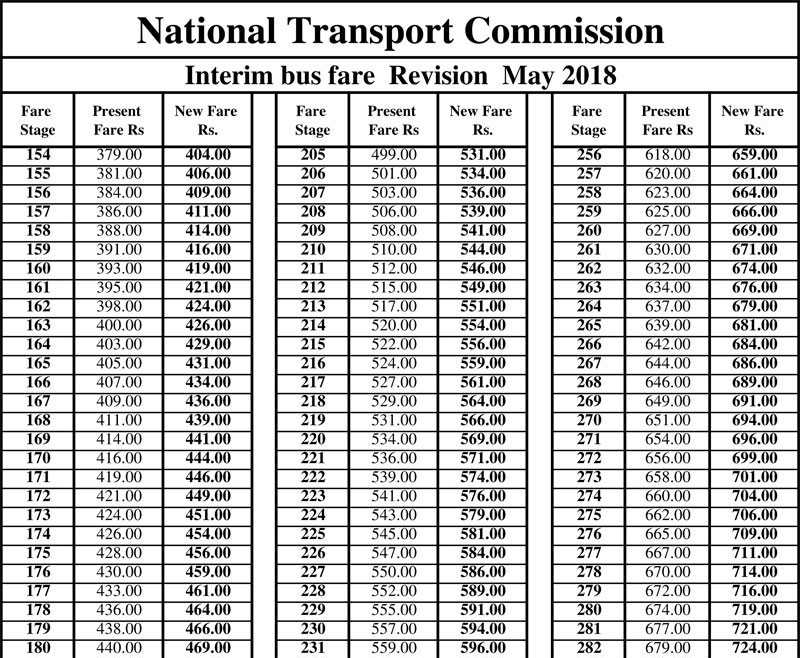 (புதிய பேரூந்து கட்டண விவரங்கள்)