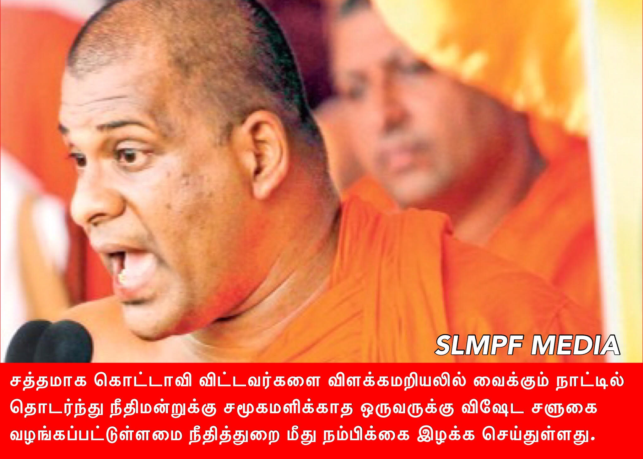 ஞானசார தேரர் விடயத்தில் இலங்கை நாட்டின் நீதித் துறை செயல்படும் விதமானது இலங்கை நாட்டை வீழ்ச்சிப்பாதை நோக்கி கொண்டு செல்வதையே எடுத்துக்காட்டுகிறது.