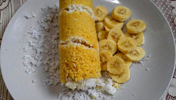 அதனுடன் தேங்காய்த் துருவல், நேந்திரன் பழத்துண்டுகள் சேர்த்து கலக்கவும்.