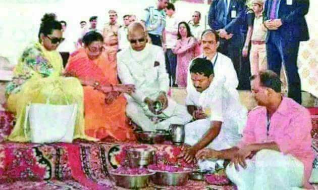 ராஜஸ்தான் மாநிலம், அஜ்மீர் மாவட்டம், புஷ்கரிலுள்ள பிரம்மா கோவிலின் உள்ளே குடியரசுத் தலைவரை நுழையவிடாத காரணத்தால் அவர் கோவி லுக்கு வெளியே உள்ள படியில் அமர்ந்து குடும் பத்துடன் வழிபாடு செய்தார்.