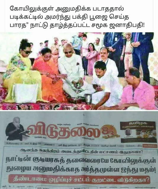 (இந்திய ஜனாதிபதி தாழ்த்தப்படட்டவராம், கோயிலுக்குள் செல்ல அனுமதி மறுப்பு)