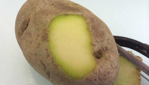 சூரிய ஒளிப்படும் இடங்களில் அதிக நேரம் இருப்பதால் உருளைக்கிழங்கு மீது பச்சை நிறத் திட்டுகள் உண்டாகிறது.
