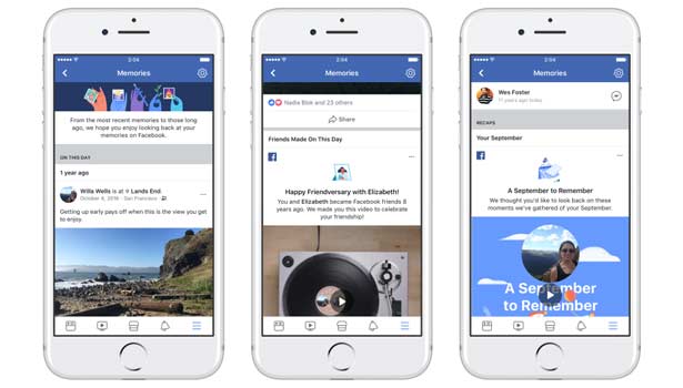 ஃபேஸ்புக் தளத்தில் மெமரீஸ் (Memories) என்ற பெயரில் புதிய பக்கம் திறக்கப்படுவதாக அந்நிறுவனம் அறிவித்துள்ளது. புதிய மெமரீஸ் பக்கத்தில் பயனர்கள் தங்களது நண்பர்கள் மற்றும் குடும்பத்தாருடன் பகிர்ந்து கொண்ட போஸ்ட், புகைப்படங்கள் உள்ளிட்டவற்றை நினைவு கூற முடியும்.